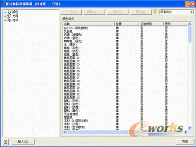 2、在“标准”工具栏上,单击“格式”“样式编辑器”,弹出如下图所示画面,在该窗口内,可新增一些颜色、光源、材料等样式。