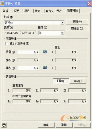 7、在“标准”工具栏上,单击“文件”“iproperties”,弹出如下图所示窗口,点击“物理特性”栏,可以看到在“材料”内显示为“Q235/A”。
