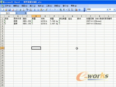 7、图(11)为生成的“部件装配BOM表”。替换表头,并且对格式进行调整后,生成如图(12)所示的格式,图(12)所示的格式,可以达到我们的要求。