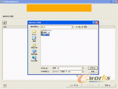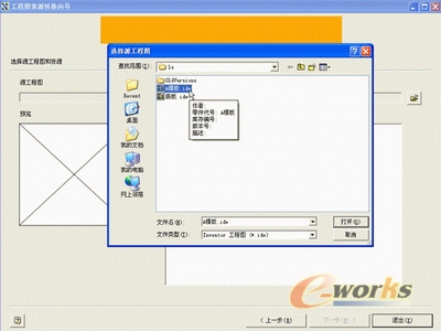 2、点击“下一步”,弹出图(21)所示窗口,在图(21)所示窗口内,选择“源工程图”,然后点击“打开”。