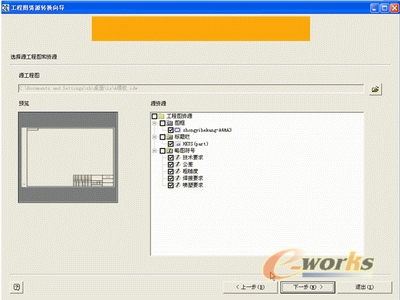 3、程序读取源文件中工程图资源(如边框、标题栏和略图符号),并将这些资源显示出来,等待用户的下一步操作,用户可以根据自己的需要,勾选相应的栏目进行更新。在本例中,全部勾选。