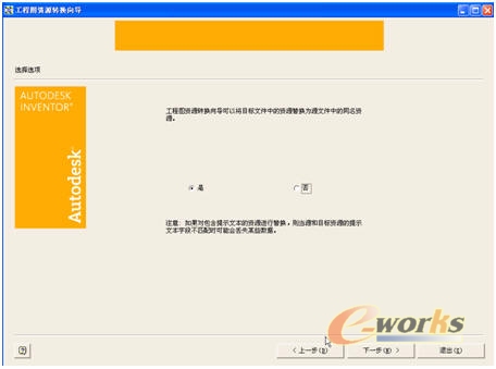3、点击“打开”,在弹出来的窗口内点击“下一步”,弹出提示用户操作的窗口,如图(24)所示,系统默认选择“否”。选择“是”,然后点击“下一步”,系统提示上述操作的一些相关信息,包括图框、标题栏、略图符号的数目等。点击“开始”开始转换,如图(25)所示。