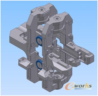 1.轧机机架。此轧机最大的特点就是机架上面带有用于支撑立辊轴承座的水平横臂。