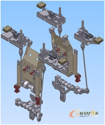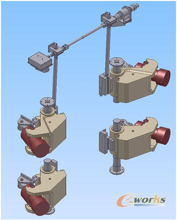 3.水平轧辊轴承座的锁紧装置和前后出口导位装置。此两套装置皆由液压缸执行锁紧操作,由液压马达驱动调整装置。
