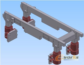 轧机在水平和竖直方向分别有4个AGC油缸进行液压压下操作。左右轧机牌坊个有一个横臂用于支撑立辊轴承座,其中轧机操作侧的横臂为方便水平辊换辊操作设计成可提升式横臂。水平辊轴承座由四个液压缸锁紧。轧机的进口与出口导位装置由液压缸驱动。