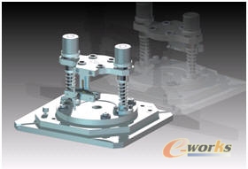 工装治具动态虚拟样机设计。加工工件在组合治具上的定位夹紧和最终装配是设计的关键部分,使用软件在计算机上完成产品零部件的实体造型,进行虚拟装配、干涉分析等多次协调的设计过程,杜绝了零件设计的错误积累导致产品返工的现象。完成这项工作非常方便,只须定义出工件与各组合治具组件之间的关系,系统就会根据给出的约束关系,将工件和治具组件自动安装到位。如果改变原有设计,与其相关的治具组件位置就会自动改变。自适应的功能使得治具组件的尺寸可以在装配中加入关系或进行约束来自动改变,从而真正实现了设计的互动。