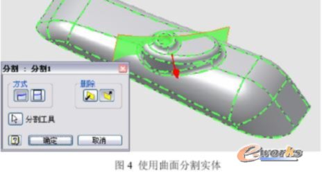 4. 用曲面“分割”零件,保留曲面的左半部分,保存模型为“罩壳左.IPT”, 参见图4;