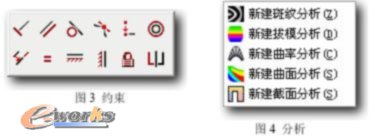 5、inventor具有草图医生、草图颜色和约束关联、有满足专业设计要求的约束(见图3)、有各种曲面截面分析手段(见图4)。