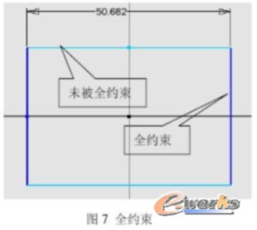 ③ 草图图线的颜色和约束关联,草图特征被全约束后其颜色会发生改变。参见图7。
