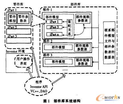 | | 1引言 随着CAD技术应用的不断深入,通用CAD系统已难以满足工业界进一步提高产品设计效率和封装专业知识的要求,因此,开发面向行业的专用CAD系统已成为提高设计效率和水平的重要方向、设计人员在利用CAD软件进行产品设计时,大量地用到国家标准件、行业标准件、常用组件、典型结构等零部件,因此,在专用CAD系统中建立开放的、信息完备的零部件库是一项重要的基础工钓。通过使用零部件库系统,设计人员可以把精力集中在新产品的创新设计上,或者在原有零部件的基础上进行变形修改,从而节省宝贵的时问,缩短产品的开发周期,提高设计效率;如果设计人员可以对库中零部件进行修正和改进,那么零部件就会在实际使用中逐步得到优化,从而提高设计的质量。 现有零部件库大部分是基于AutoCAD的二维零部件库,渐渐不能满足应用日益广泛的二维设计的需求.而在三维零部件库中,大部分是零件库,而少有部件库。在.9utoCAD等二维CAD软件中创建参数驱动的部件库和零件库在方法上几乎没有区别;而常用三维CAD软件对零件模型的参数化驱动有很好的支持,但并不直接支持对部件模型的参数驱动,导致在三维软件中创建部件库比创建零件库要复杂得多。本文介绍了基于Inventor的冲压模具部件库系统的体系结构及其各部分的实现方法,最后通过实例予以说明。 2部件库系统结构 建立零部件库系统的中心目标是最大限度地重用企业内部和外部的零部件知识资源,一般来说,部件库系统的基本功能包括利用部件库系统直接生成部件的三维模型并获得所需要的信息,以及对部件库进行添加、修改和删除等管理操作部件是由零件及其装配关系构成的,因此可以把部件库系统分为零件库和部件库两层结构,加上用户操作界面以及必要的程序,结构如图1所示。部件库中的部件是由零件库中的零件装配而成的,用户所选部件的规格通过程序和数据表的映射转化为部件所包含零件的规格,最后程序把这些规格参数变为零件的驱动参数,进而得到由这些零件构成的部件。 下面分别对除操作界面以外的其他三个部分进行介绍。 2.1零件库结构 跟常见标准零件库的结构基本相似,零件库包括支持参数驱动的Inventor零件模型和储存零件驱动参数的零件参数数据表中的字段与零件模型的驭动参数相对应,数据表的每条记录对应一个具体规格的零件。Inventor提供的数据表还支持非系列值,即某些字段可以是用户输人的任何值。  | | | | |