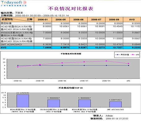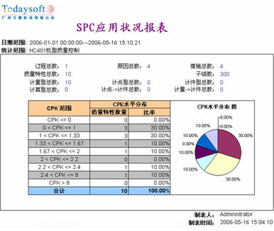 Todaysoft® SPC3000系统的主要功能: 1)根据质量数据的采集特征实时绘制X Bar–R,X Bar-S, X-MR, P, Pn, C, U图、反映微小变化的EWMA、CUSUM图及预控图。  Todaysoft® SPC3000数据采集支持手工录入和自动采集。 2)进行各种统计分析,如平均值、极差、标准差、Cp、Cpk、Ppk等,为质量改善提供数据说明和指导。  支持正态分布校验、直方图分析、直通率分析、缺陷分析、相关回归分析、过程异常原因分析、DPMO分析,支持适于多品种小批量的短运程分析。 3)通过质量特性实时分析对过程进行实时监控,从而达到预防质量问题的发生。  4)自动生成各种例行报表,如过程能力报表、过程改进分析报表、质量特性原始记录报表、SPC应用状况报表、异常情况处理报表、异常原因措施报表及不良情况对比报表。    5)系统支持Oracle,SQL Server,DB2等主流数据库,支持跨平台操作,并实现了与ERP、MES、CAPP等系统的无缝连接,具有较好的开放性。 6)系统提供经过底层封装的二次开发平台,可根据客户需求在标准产品的基础上进行二次开发,完全满足客户的个性化需求。 类比同类软件的优势 1)支持多种数据采集方式:手工录入/导入/自动采集(串口、以太网等); 2)完善的过程控制及异常处理跟踪,是真正的在线过程控制系统,并通过异常-原因-措施知识库为分析和解决问题提供指引; 3)支持多品种小批量生产模式的短运程控制和分析; 4)系统提供丰富的报表,用户可根据需求进行多层次多角度分析; 5)Todaysoft® SPC3000系统可实现与其他信息系统的无缝连接; 6)用户界面友好,易用性很好。 典型用户清单 上海大众、一汽轿车、海南马自达、康明斯、佳通轮胎、法雷奥、施奈德、松下、GE、正泰、厦华、飞利浦、ABB、安靠Amkor、艾默生、联想等。