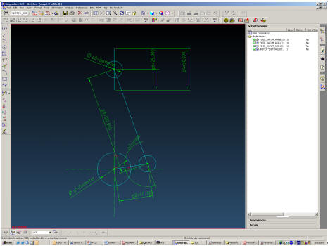 参数化建模,是基于特征的实体建模方法,对一些关键尺寸进行参数化编辑:在表达式里设立相关性,用Wave链接进行零件建模,创建草图,建立装配以及建立装配体的配合。表达式是UG 中用来建立参数变量相关性的。用表达式来控制模型特征,可以通过编辑或修改表达式中的定义参数来完成。并且,单个的表达式能够直接或间接的作用于多个特征并保证它们的相关性。所以,用一个表达式来控制多个特征时,当这个表达式改变时,与之相关的尺寸也随之更新了。下图就是通过控制总装配图中的Sketch 中的参数来控制各个零件的。各个零件通过利用Wave Link 来完成,这样就实现了产品的参数化建模。下列组图示例参数变化时产品的变化趋势。当设定参数为下图时: