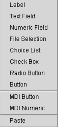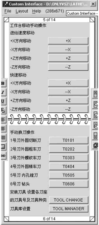 因VERICUT软件为全英文界面,为使培训学员易于操作,可用定制功能定制面板。由菜单“File→Custom interface”,进入定制界面。按F7进入编辑模式,再按F7退出编辑模式,用PAGE UP/DOWN进行界面翻页。在编辑模式中,用添加页APPEND PAGE工具添加HTML页或FROM页。若添加FROM页,单击右键显示菜单如图4所示,选择相应控件进行添加。图5为CJK6132车床定制面板的一部分。