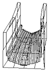 Mastercam具有很强的曲线、曲面造型功能,曲面造型主要有以下几种方法:Loft(举升面)、Ruled(直纹面)、Coons(孔斯面)、Revolved(回转面)、Swept(扫描面)、Fillet(倒角面)、Trim\Extend(修剪、延伸面)、Blend(熔接面)等。鞍座的绳槽分为左右对称的两部分,每一部分有七个绳槽曲面,在造型时只要造出其中的一部分就可以了。首先按图纸尺寸作出绳槽的底面曲线和侧面曲线,绳槽的底面曲线由四段圆弧组成,侧面曲线由圆弧与直线组成。然后用串接(chain)的方法分别将组成底面曲线与侧面曲线的圆弧与直线串接起来,以直纹面(Ruled surface)方式生成绳槽曲面。