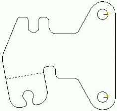 对于下图中的边界图形(内部孔被隐藏了),若为了节约材料和加工成本,可能事先用剪板机下料,只需要加工图中的圆弧部分,而添加这样的工序所加工的一般是一个封闭回路。若要只加工圆弧,则一般必须删除其余多余的图形。