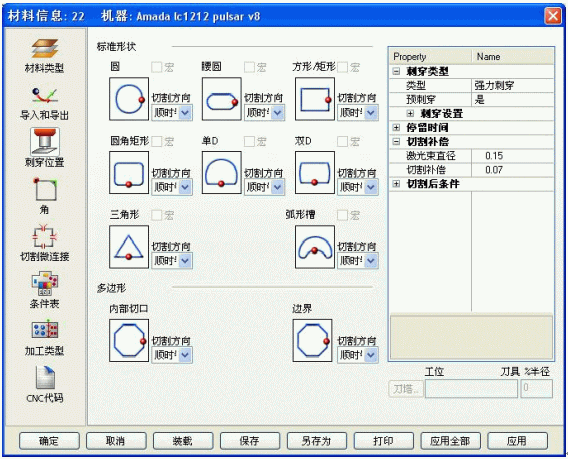 在材料设置环节中,主要的设置项目有:导入/导出、穿刺点、角特征、微连接、切割条件、处理方式等。