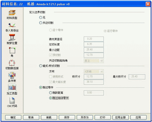 另外,针对表面覆盖保护膜的镜面不锈钢之类的材料,FabriWIN可以支持用不同的切割条件切割板材两次,首先用蚀刻的条件切掉路径上保护膜,然后再用正常切割条件切割板材。