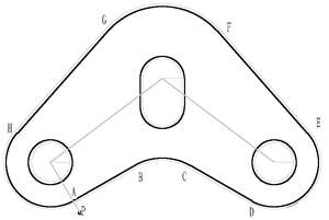 轨迹生成是在已经构造好轮廓的基础上,结合线切割加工工艺,给出确定的加工方法和加工条件,由计算机自动计算出加工轨迹的过程。下面结合本例介绍线切割加工走丝轨迹生成方法。