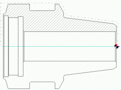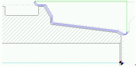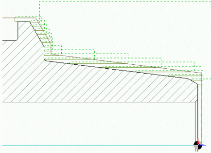 这里我们以经过粗加工和热处理后得到的毛坯开始,讲述精加工刀具路径的生成程过程。EdgeCAM提供了多种生成刀具路径的方法,这里我们选用轮廓车削的方法进行半精加工,通过刀具导入导出及轮廓延伸等功能的设置,生成的刀具路径与我们以前通过手工编程时使用的车削轮廓循环生成的刀具路径基本上一致,生成刀具路径如下图示: