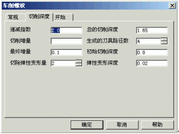 在进行螺纹加工的过程中,生成刀具路径同样也是很简单,以往手工编程时我们往往是通过操作工人调整加工原点的位置来调整加工螺纹的深度等参数,加工质量不稳定;使用EdgeCAM生成刀具路径时,在设置加工螺纹的参数过程中,有很多细致的参数设置,甚至将切削过程中,弹性变形的影响也考虑进去了,因此我们现在在加工螺纹的时候,基本上可以一次加工成型,再也不用为微调修整而烦恼了。下面是在Edgecam中,关于切削螺纹深度的参数设置内容。