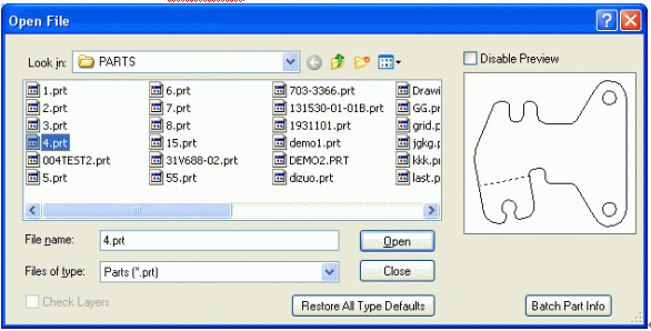 选中4.prt(可同时选中多个),单击打开\Open,弹出如下对话框。