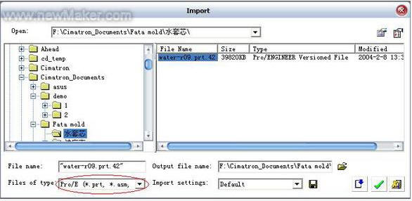 Cimatron E拥有强大的数据转换接口,它除了涵盖所有的工业标准数据格式(如:IGES,STEP等),还可以直接读取一些主流CAD系统的数据格式(如:CATIA、UG、PRO/E等)。上游客户提供的数据格式是Pro/e WildFire2.0的,我们通过Pro/e直读接口把文件导入到Cimatron E中。