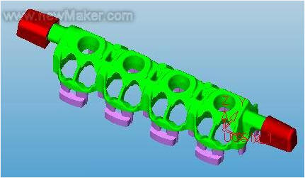 南京法塔模具有限公司是一家以制造重力铸造模为主的大型模具企业。在铝铸件中相对于其它铸造方式,重力铸造其制造工艺的复杂性是相当高的。铝缸盖重力铸造模是其典型的产品之一(如下图):