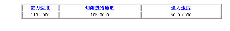 5.2.5.2点击每一Operation进给速率详值链接时,显示出加工此 Operation时用到的进刀速度值,切削进给速度值,退刀速度值,具体见图9。