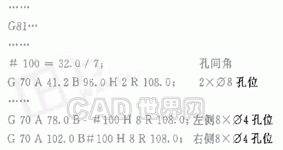 B- 孔 间 角 ,当B>0。时为逆时针方向加工,B<0。时 为 顺 时 针 方 向 加 工 。当B省略时为整圆周 均 布 孔 ,此 时 的 加 工 方向为逆时针;
