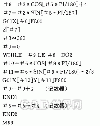 在 上 例 中可看出,角度每次增加的大小和最后工件的加工表面质量有较大关系,即记数器的每次变化量与加工的表面质量和效率有直接关系。希望读者在实际应用中注意。