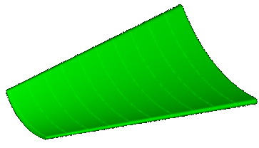 将所得到的截面线通过Create(创建)—Surface(曲面)—Loft(举升)操作,可以得到叶片的叶身型面,截面的数量将影响曲面的光顺性,调整各数据点的对齐方式,和曲面公差,得到如下图(图5)所示的三阶NUBS曲面。