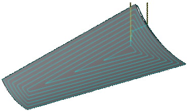 图7是沿切削方向走刀的,有较高的效率,在实际中应用较多。但是随着曲面切削点的法矢和刀具轴线(Z坐标轴)的夹角增大,表面残余增大,曲面的陡峭程度和其在夹具上的安装方位对行距很敏感。
