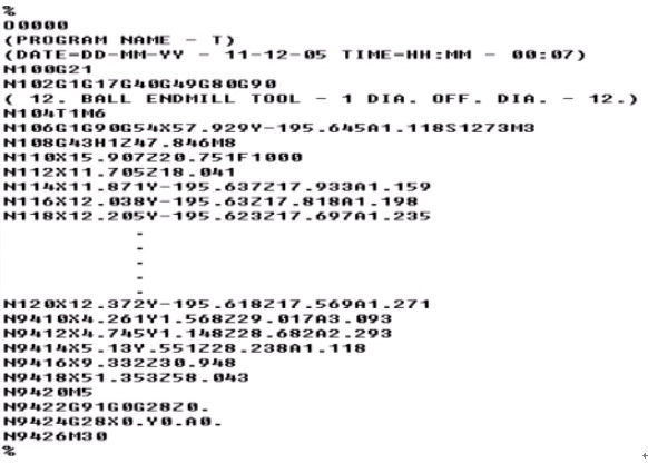 通过Post processing (后置处理)操作,系统自动产生NC程式,如下: