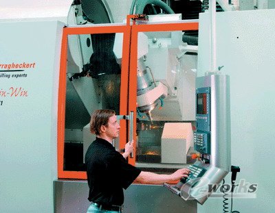 图5 通过安装安全玻璃的机器门可以在观察或输入过程数据的同时观察铣削过程