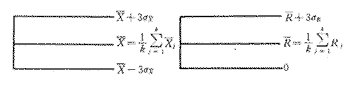 X为样本组平均值的数学期望,j为样本组平均值,为样本极差的数学期望,Rj为样本极差的平均值,为分布的标准偏差,σR为R分布的标准偏差