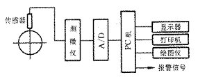 计算机辅助质量控制系统框图如图3所示。本系统采用接触式测量,其原理是通过传感器及测微仪将工件的加工误差转换成电信号,由计算机控制A/D板将模拟量转换成数字信号,并对采集数据进行系统分析,输出分析结果。给出相应的调整信息,当工艺系统不稳定时,发出报警信号。