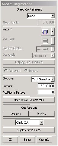 轮廓加工所依据的是一条曲线,可以利用MILL_PLANAR菜单下的CLEANUP_CORNERS, PLANAR_PROFILE编制轮廓加工程序,特别的,可以利用MILL_CONTOUR菜单下的CONTOUR_ZIGZAG编制轮廓加工程序,只需要在AREA MILLING METHOD菜单下,将PATTERN设置成PROFILE即可, 如图15所示。