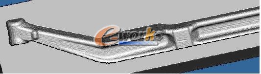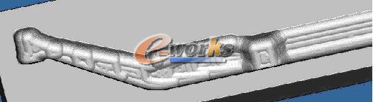 在粗加工方面,等高切削是大家常用的加工策略,而近几年有人用插铣(Plunge Miing)的方法做粗加工,其效率比等高切削高但是刀具的损耗比较大,孰轻孰重应酌情而定。精加工经常使用的刀轨是曲面平行加工或等高精加工,而PowelMill软件有个刀轨叫Optimised Constant Z Finishing,是一个结合了等高和平行两种刀轨的精加工策略,它的特点是可将加工面分为平缓区域和陡峭区域,在平缓区域自动生成平行刀轨,在陡峭区域则生成等高刀轨,不同区域的接刀光顺且抬刀很少或不抬刀,这样使得精加工编程就更加方便。UGS公司NX3以后的版本也在等高策略里增加了类似刀轨的选项,而Cimatron E软件里早也有此功能,只是它们出的刀轨都不如PowelMill做的好。