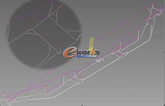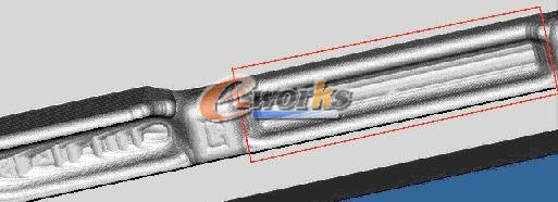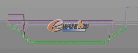 4.1,以检验角为基准(全部程序采用同一个零点)先画外形参考线,目的是便于直观型腔位置,预防错位发生,刀轨如图: