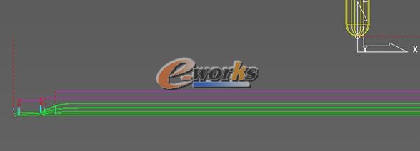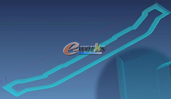 4.10,Ф16刀清根(中间局部),中间15.2mm宽的筋精加工刀不能铣到底,用Ф16多刀清根策略完成,剖面刀轨图:
