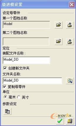 (1)、打开Cimatron E8,点击进入级进模设计工作环境。选择冲压产品零件,定义装配文件名称,文件夹名称以及设计单位。点击确定。