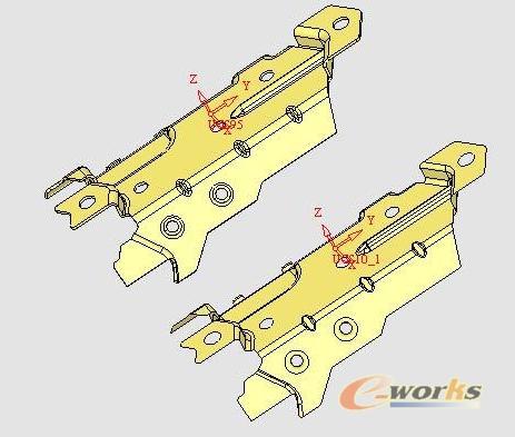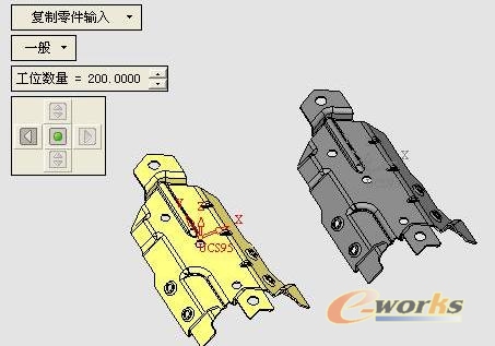 (2)、创建工位坐标,并定义该坐标为当前工位坐标。请注意坐标Z轴方向是产品零件厚度方向。并复制一个工位模型。