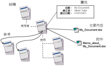 结构: 通过建立文档之间的“使用”关联,可以建立一个文档间的分级结构,并可以采用这种分级结构方式在一定程度上反映产品的结构关系。