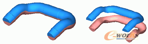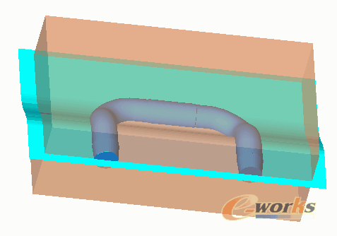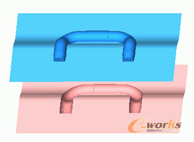 步骤六、输出动模体和静模体,这两个部分都含有毛坯和分模面。