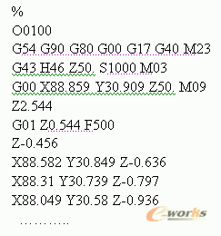 步骤七、后置处理,生成G代码。Cimatron支持法纳克,西门子、海德汉等数控系统。下图是清根程序的一部分: