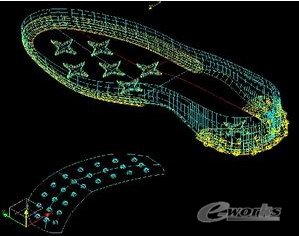 CAD/CAM 的应用很大地刺激了设计者的想像力,使他们设计出更复杂的鞋底。一些鞋底要求使用不同的颜色甚至不同的材料,人工的方法将非常不准却,且要经过反复的修模, CAD/CAM 系统的应用提高了制模系统的精度和配合程度。