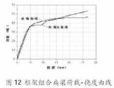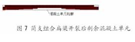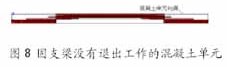 简支梁全跨承受正弯矩,充分的利用了材料的特性。但在加载初期,处于中和轴以下的混凝土要开裂,退出工作,在ANSYS 进行有限元分析时是将这些不参与工作的混凝土单元杀死,最后剩下只有参与工作的混凝土单元,见图7,其荷载-跨中挠度曲线见图10。两端支座固定梁在杆端负弯矩最大,跨中正弯矩最大,在整个梁跨度范围内弯矩要发生变号。