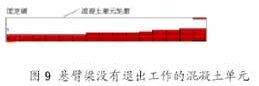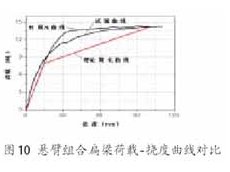 在加载初期,靠近支座中和轴以上和跨中中和轴以上的混凝土都要开裂,退出工作。ANSYS模拟的结果与实际情况十分接近,最后剩下只有参与工作的混凝土,见图8。荷载-跨中挠度曲线见图11。悬臂梁开裂后,剩下参与工作的混凝土见图9,荷载-端部挠度曲线见图12。