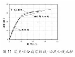 从以上3 根组合扁梁的荷载-挠度曲线可以清楚的看到:无论是弹性阶段组合扁梁的刚度,还是组合扁梁塑性极限承载力,有限元分析的结果都足够精确,与试验结果吻合良好。这说明有限元分析方法是可靠的,可以用来分析其它类似的组合扁梁。