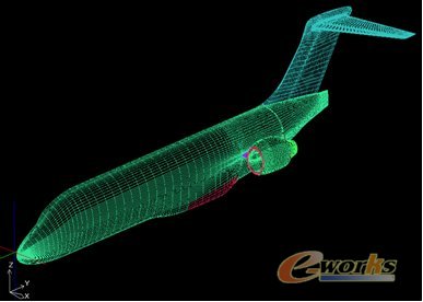 在对如图1所示的布局的飞机的机翼的特性研究时,如果要对平尾的气动特性进行分析,采用机身+吊挂+发房+垂尾+安定面+升降舵半模模型进行计算.模型的表面网格如图11所示。